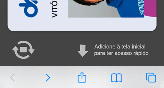 Na tela da sua CARTEIRINHA, toque no botão de compartilhamento, que é um quadrado com uma seta apontando para cima, geralmente localizado na parte inferior da tela.